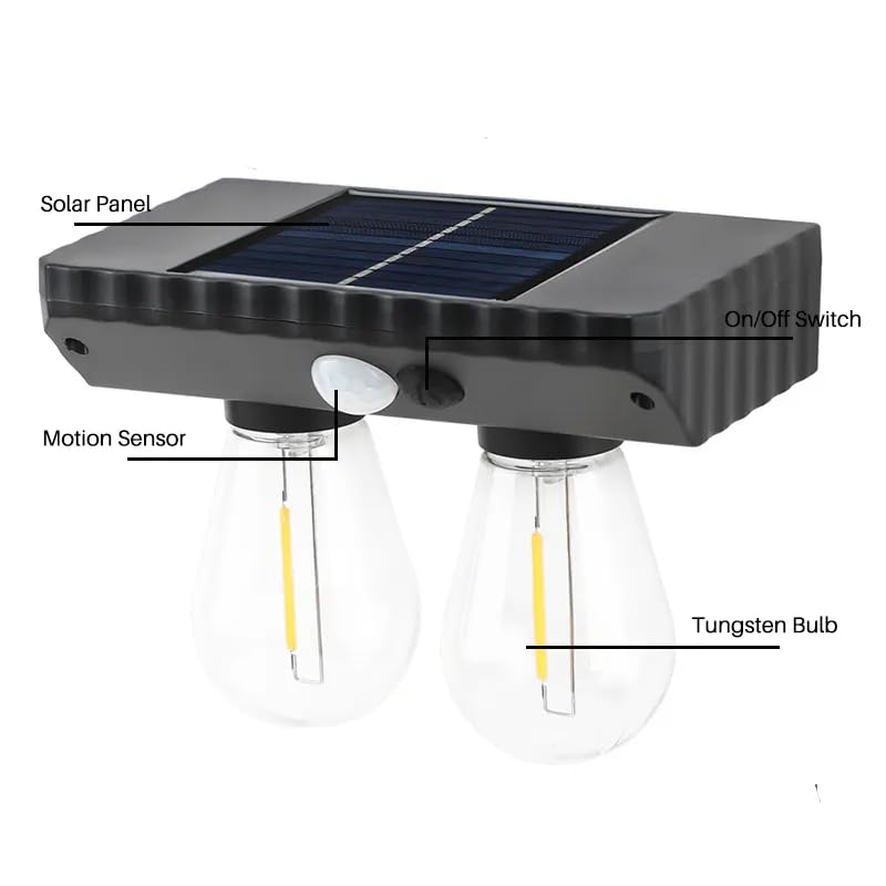 این چراغ با پنل خورشیدی باکیفیت و دو لامپ LED قدرتمند طراحی شده که نور گسترده و شفافی ایجاد میکند.
